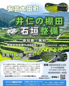 井仁の棚田の石垣は、自然石を組み上げてつくられた昔ながらの石垣です。水はけがよく、斜面の田んぼを長年支えてきました。草が生い茂ると石垣が傷み、崩れやすくなります。草取りは棚田を守るために欠かせない作業です。この美しい景観 […]